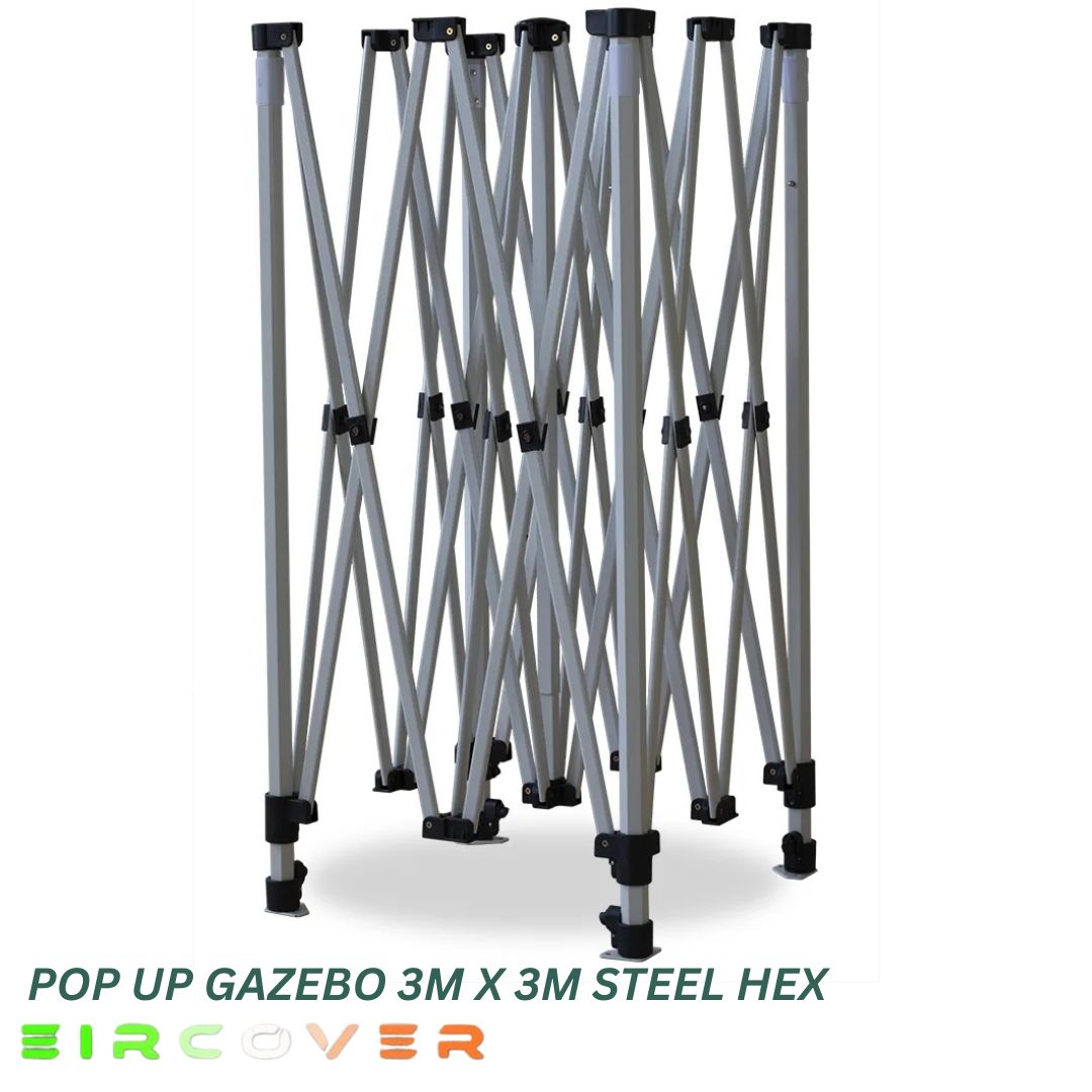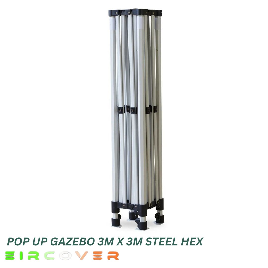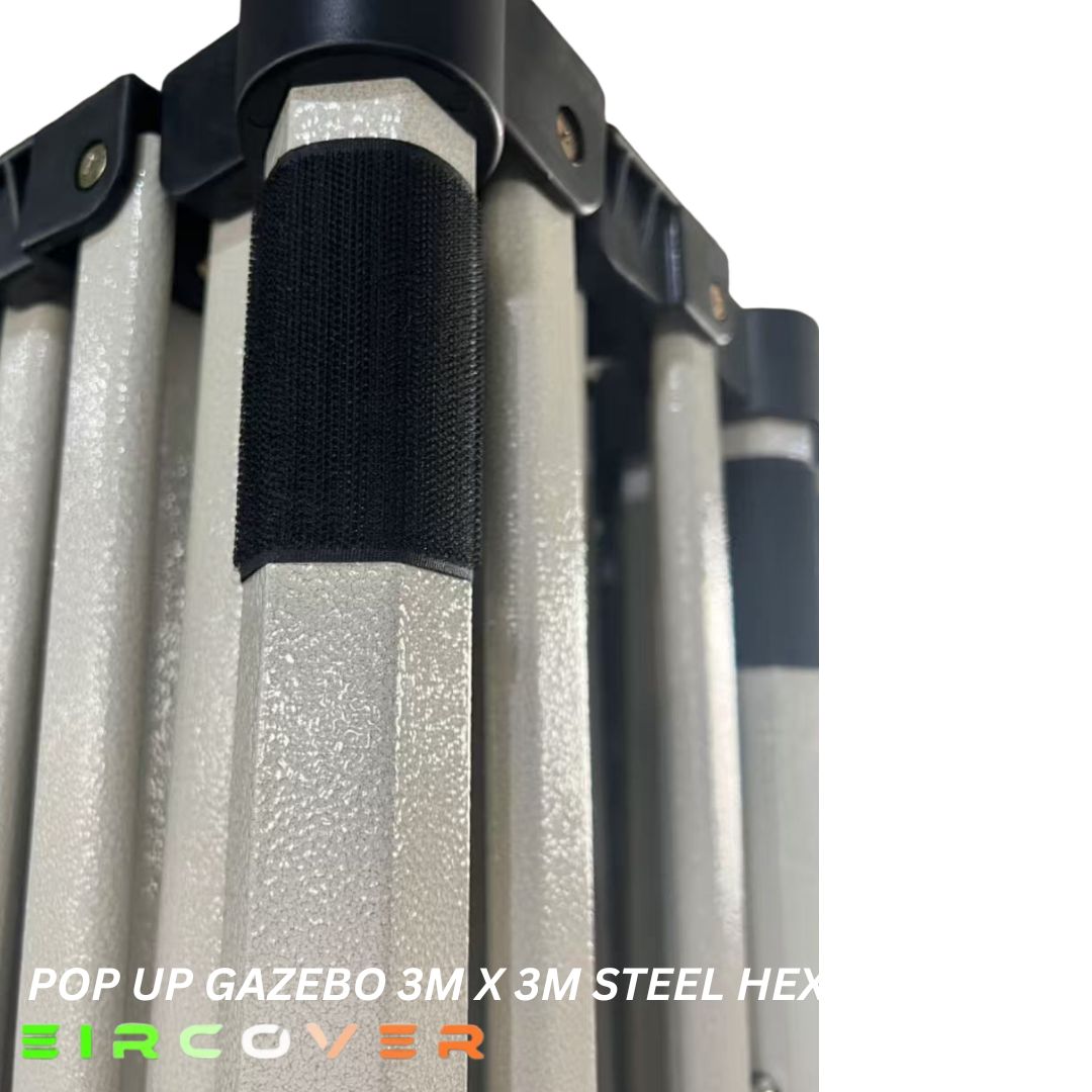 This durable pop-up gazebo features a strong 40mm hexagonal steel frame with reinforced nylon brackets and a push-button slider system for quick and easy setup. Designed for stability and long-term use, it offers excellent protection for outdoor events and commercial use.