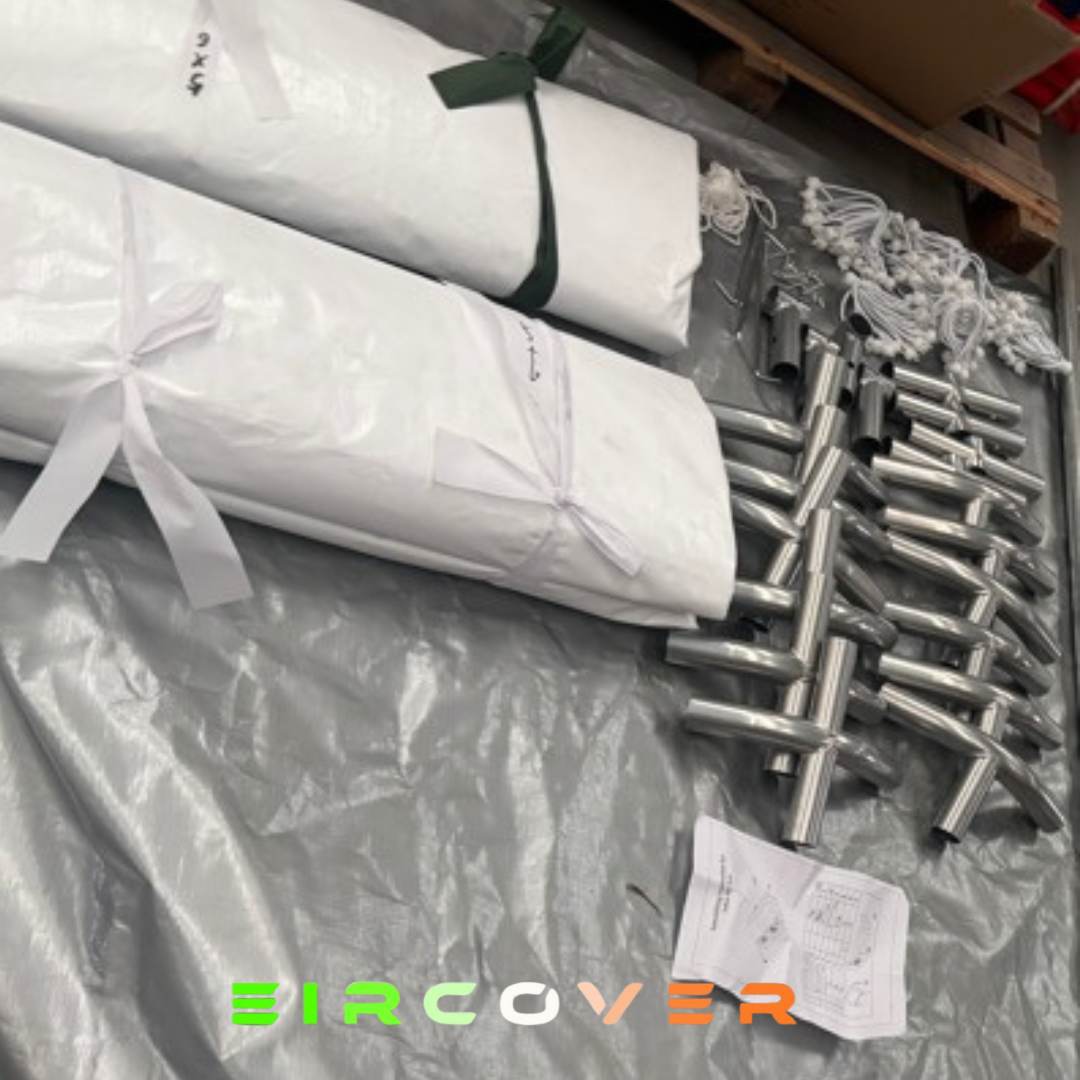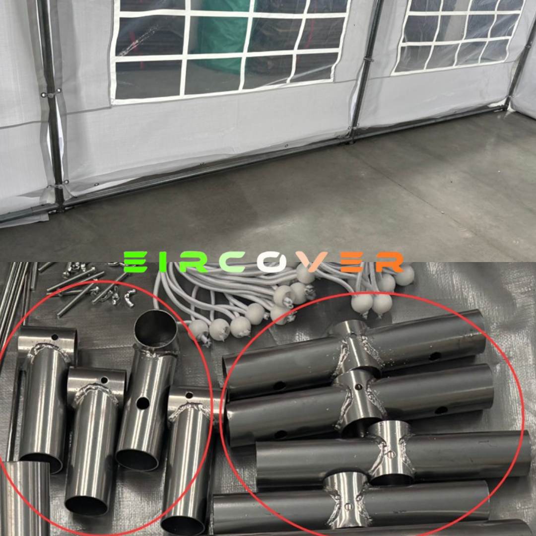- Cover: PE tarpaulin – 180gsm roof, 160gsm sidewalls (100% waterproof, UV-resistant)