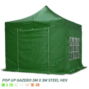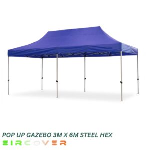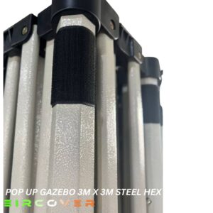 This durable Pop Up Gazebo Steel Hex 3m x 6m (10ft by 20ft) features a strong 40mm hexagonal steel frame with reinforced nylon brackets and a push-button slider system for quick and easy setup. Designed for stability and long-term use, it offers excellent protection for outdoor events and commercial use.